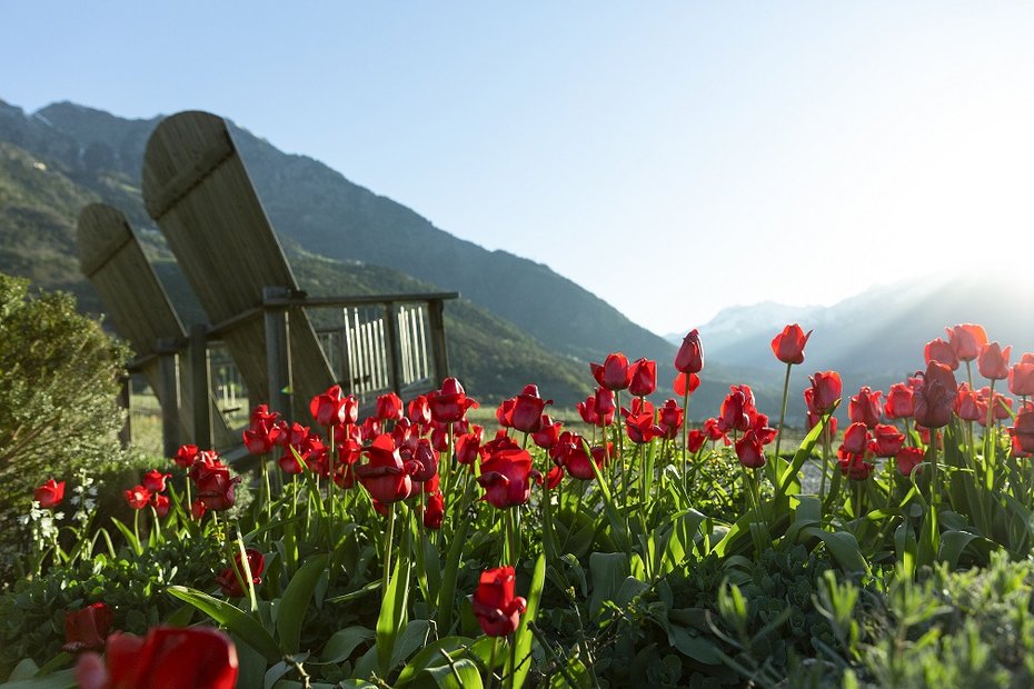 Das Ruster Resort liegt ruhig und dennoch zentral im Gartendorf Algund auf 360 m Meereshöhe, inmitten von Obst- und Weingärten und mit wunderbarer Aussicht auf Meran und das weite Etschtal.