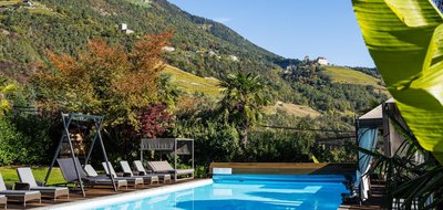 Das Ruster Resort liegt ruhig und dennoch zentral im Gartendorf Algund auf 360 m Meereshöhe, inmitten von Obst- und Weingärten und mit wunderbarer Aussicht auf Meran und das weite Etschtal.